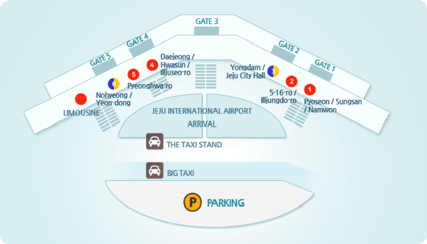 Express Bus (101, 111), Boarding at Airport Gate 1(front) (Jeju Int’l Airport -> Intercity Bus Terminal -> Use Ilju Ave. Bus Line)